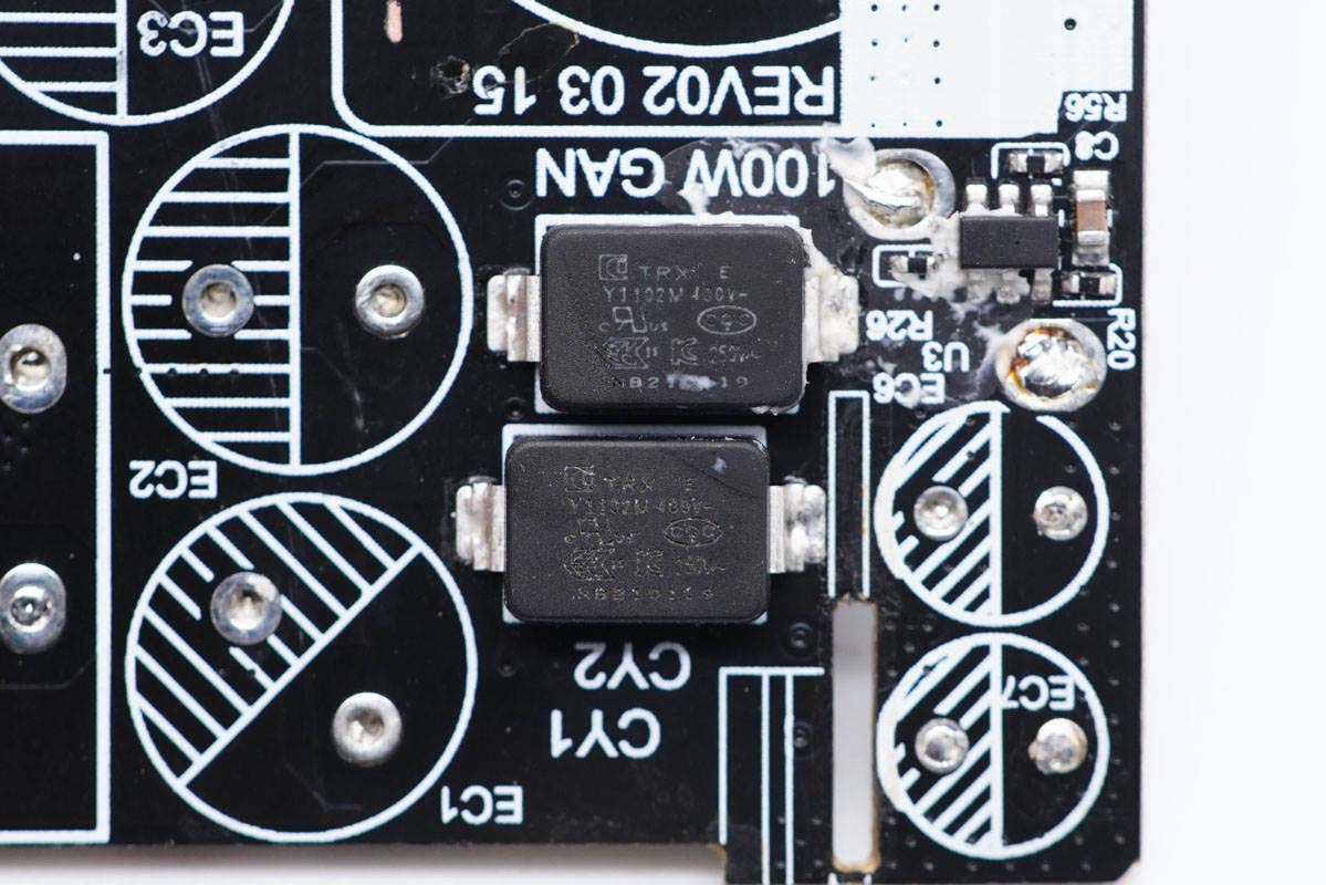兩顆貼片Y電容來(lái)自四川特銳祥科技股份有限公司,具有體積小、重量輕等特色,非常適合應(yīng)用于氮化鎵快充這類高密度電源產(chǎn)品中。