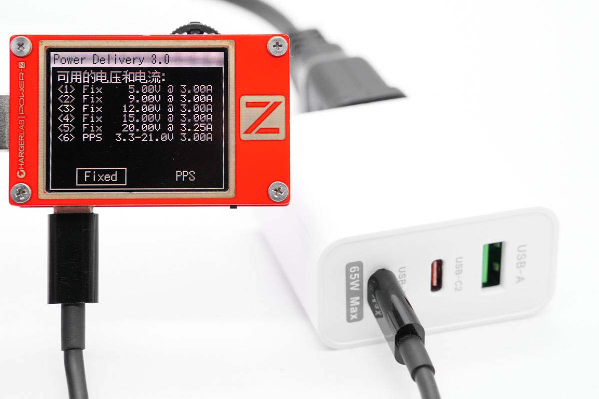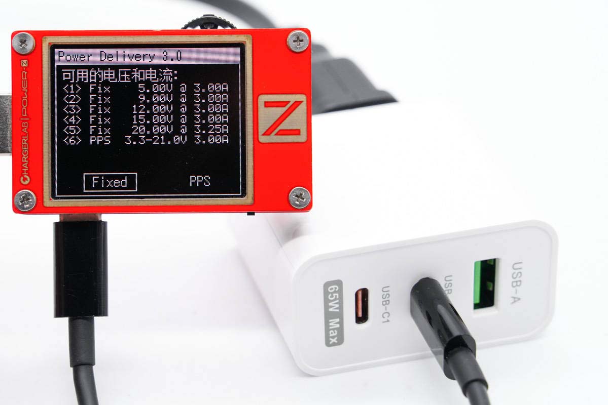 同時測得C1口具備5V3A、9V3A、12V3A、15V3A、20V3.25A五組固定電壓檔位,以及3.3-21V3A一組PPS電壓檔位。