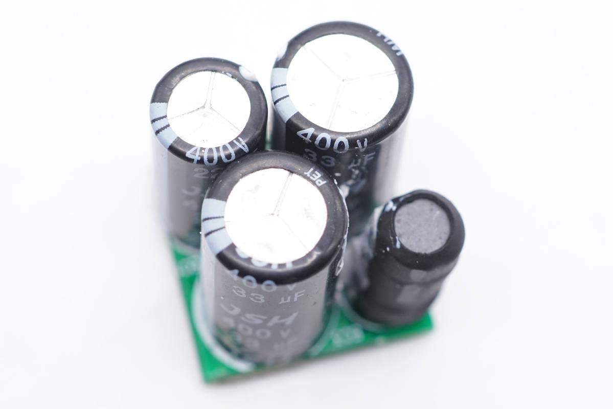 四顆高壓濾波電解電容均來自JSH益陽萬京源,兩顆較大的規格為400V 33μF。