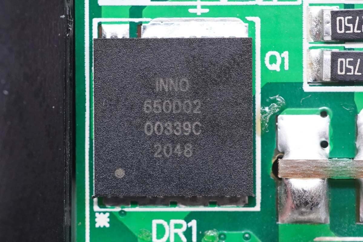 氮化鎵功率開關管采用英諾賽科INN650D02,額定耐壓為650V,峰值耐壓750V,導阻低至0.2Ω,符合JEDEC標準的工業應用要求,支持ESD保護,支持開爾文源極。最高工作溫度150℃。