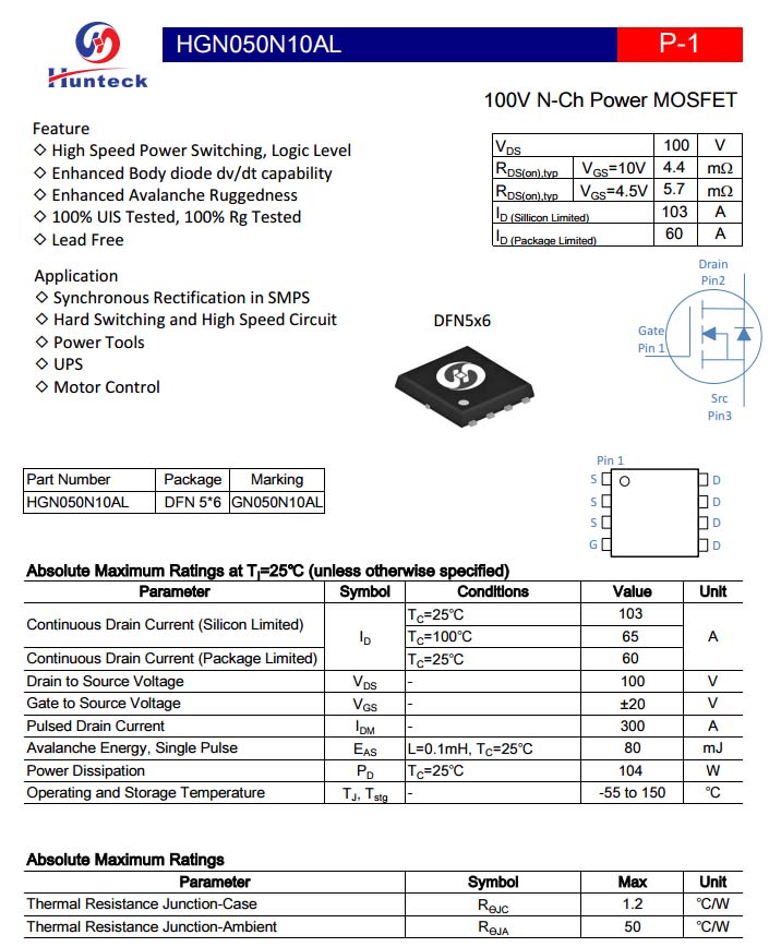 恒泰柯HGN050N10AL資料信息。