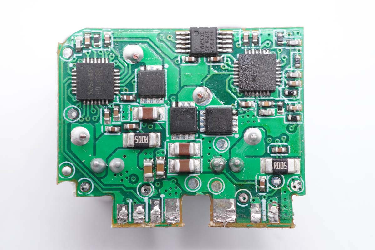 背面設有MCU、兩顆二次降壓協議IC以及三顆MOS管。