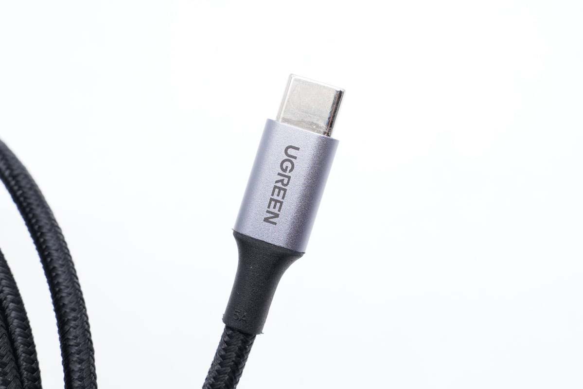 線纜兩端做了抗彎折處理,線頭外殼采用鋁合金材質(zhì),印有UGREEN品牌。