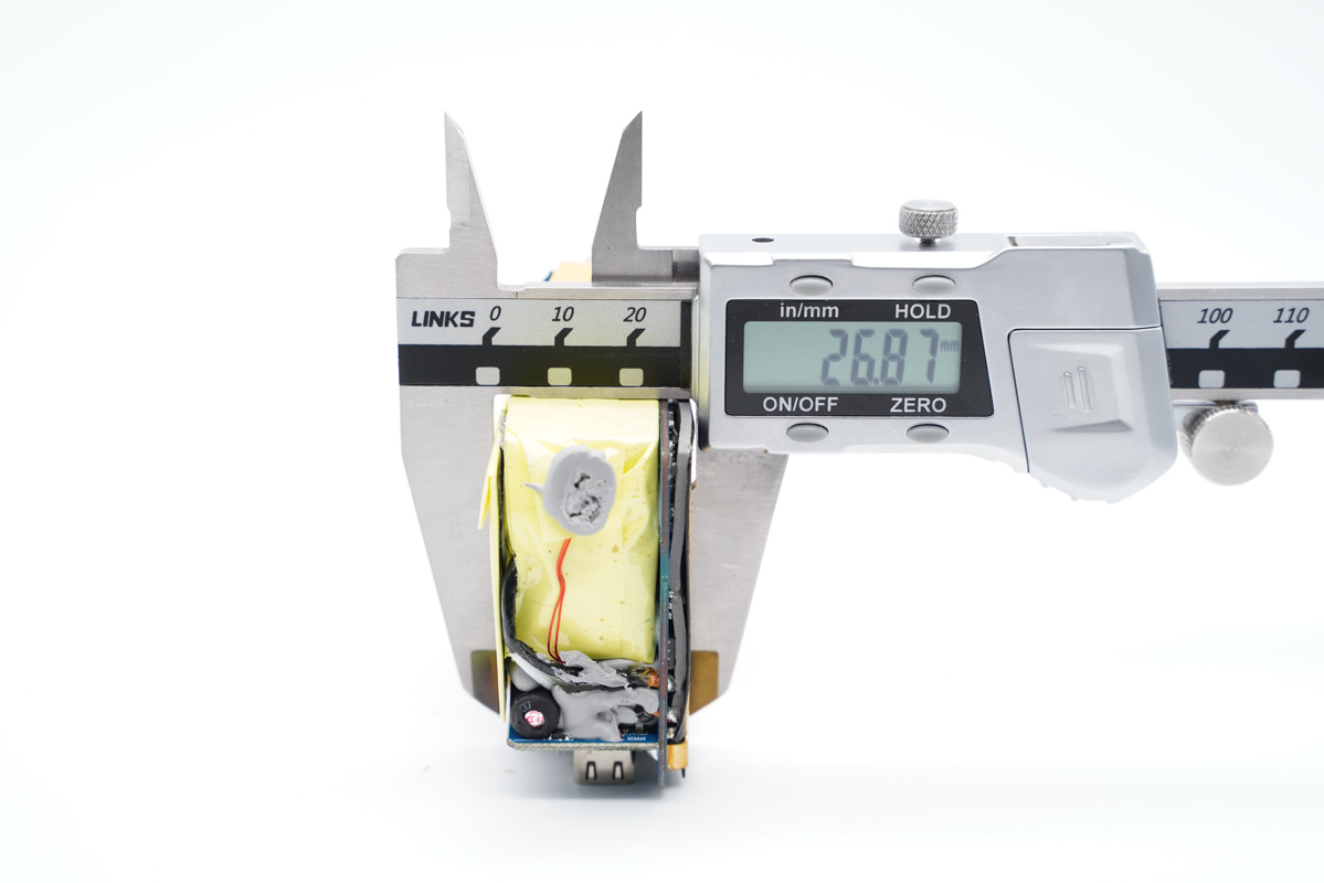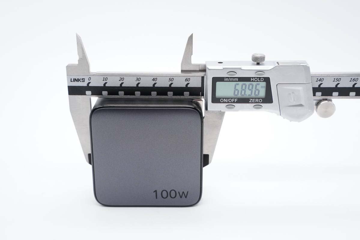 使用游標(biāo)卡尺實測充電器機身長度為68.96mm。