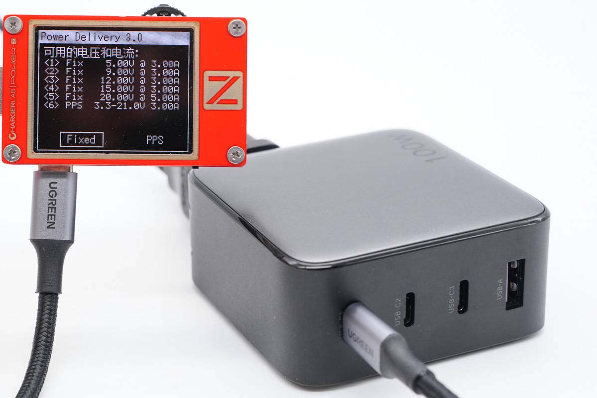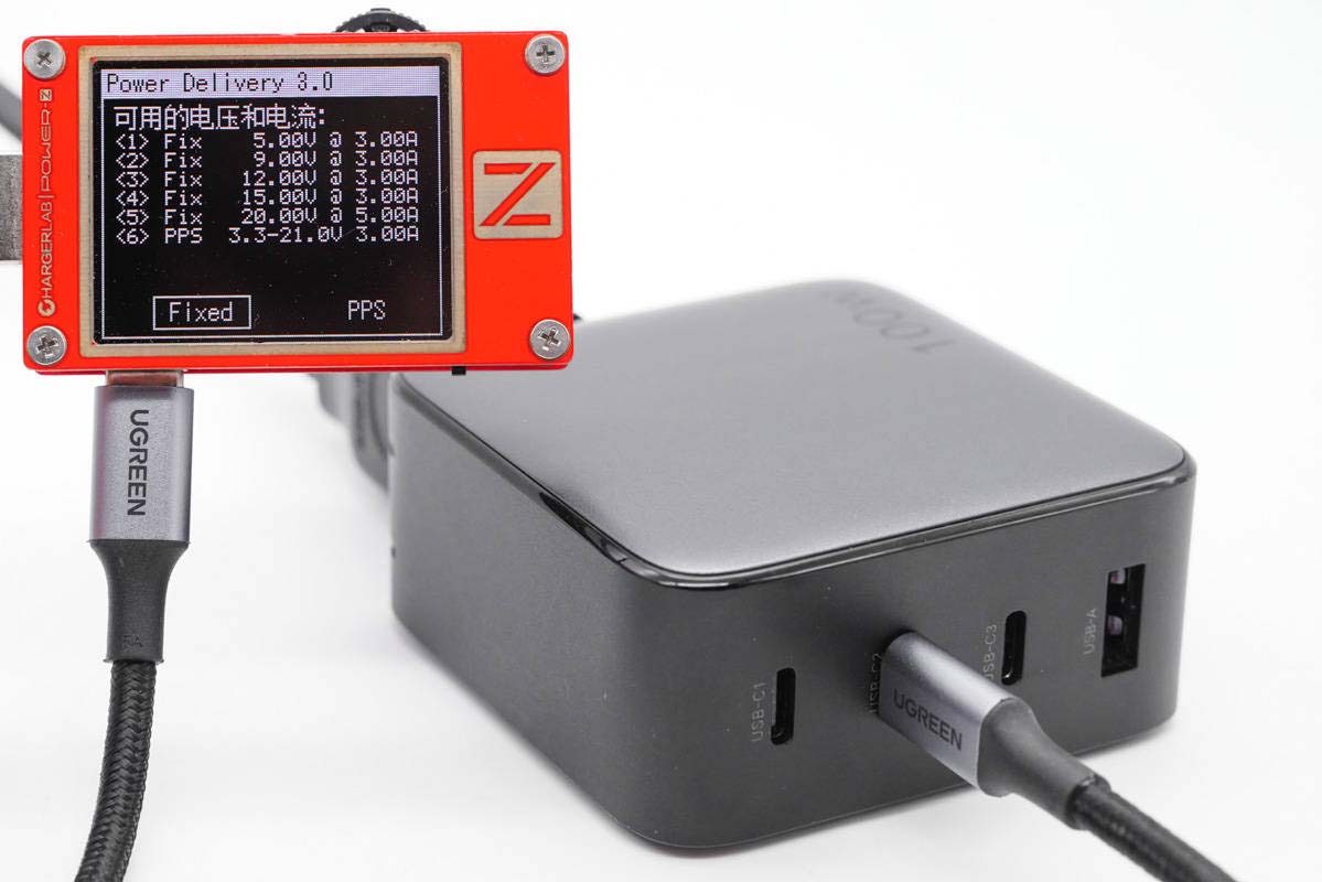 此外還測得C1口具備5V3A、9V3A、12V3A、15V3A、20V5A五組固定電壓檔位,以及3.3-21V3A一組PPS電壓檔位。