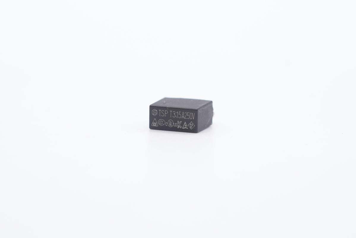 延時保險絲特寫,規(guī)格為3.15A 250V。