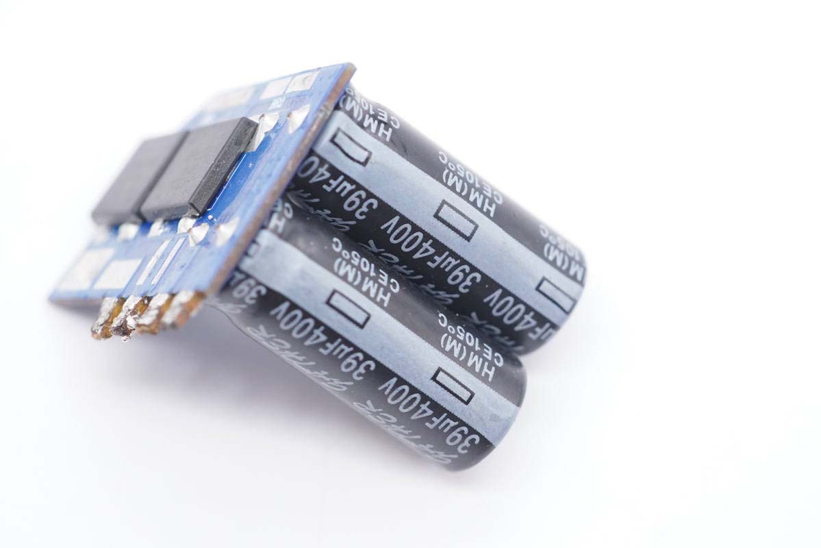 5顆高壓濾波電解電容均來自凱澤鑫電子,小板上的兩顆規(guī)格為400V 39μF。