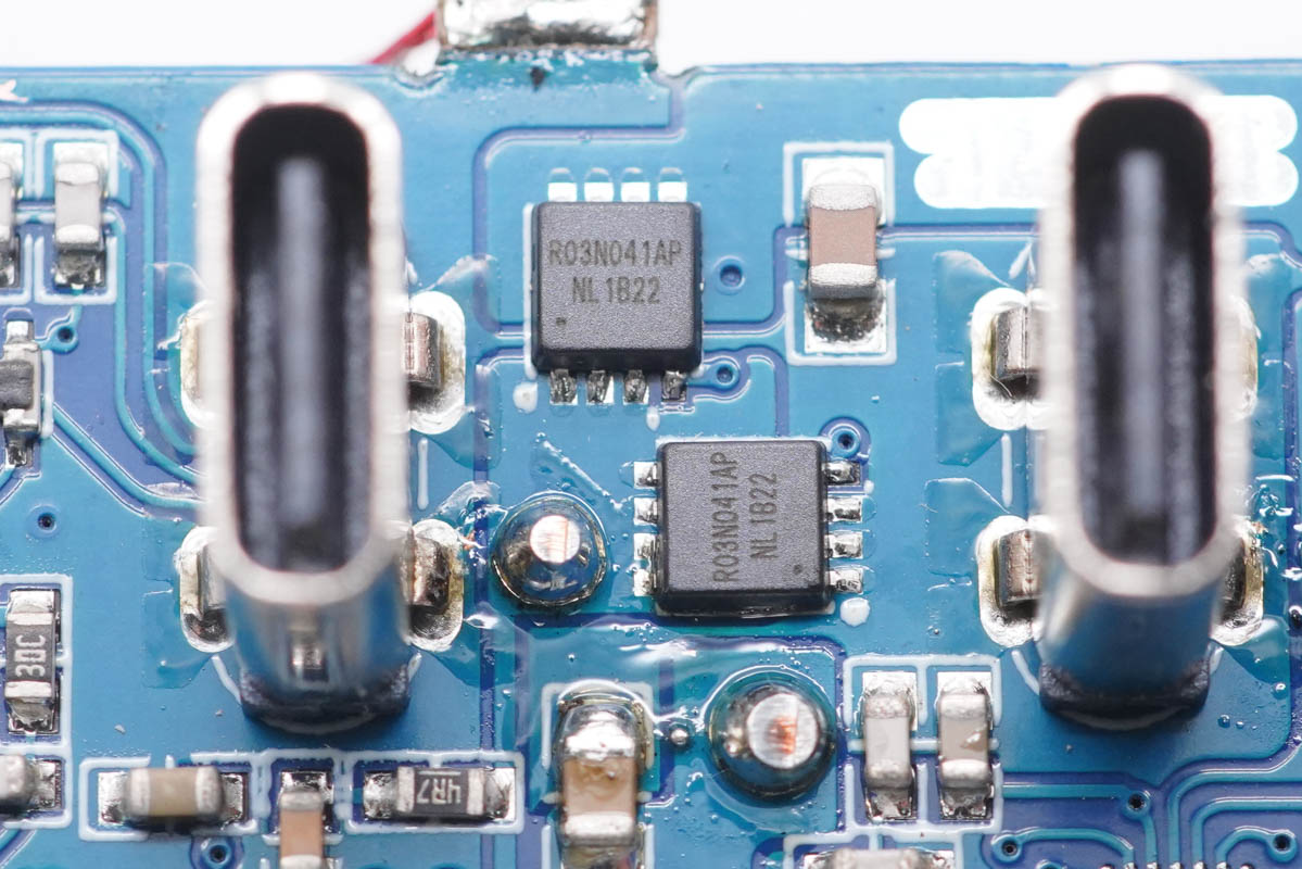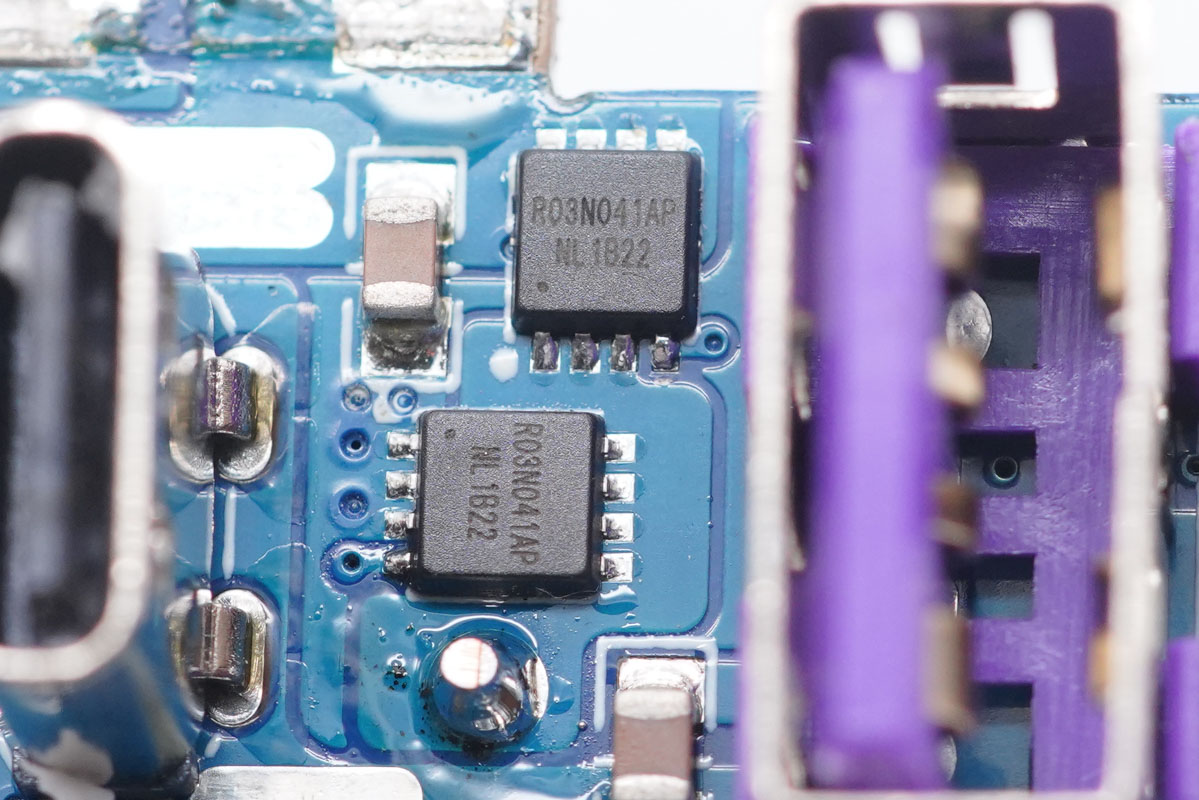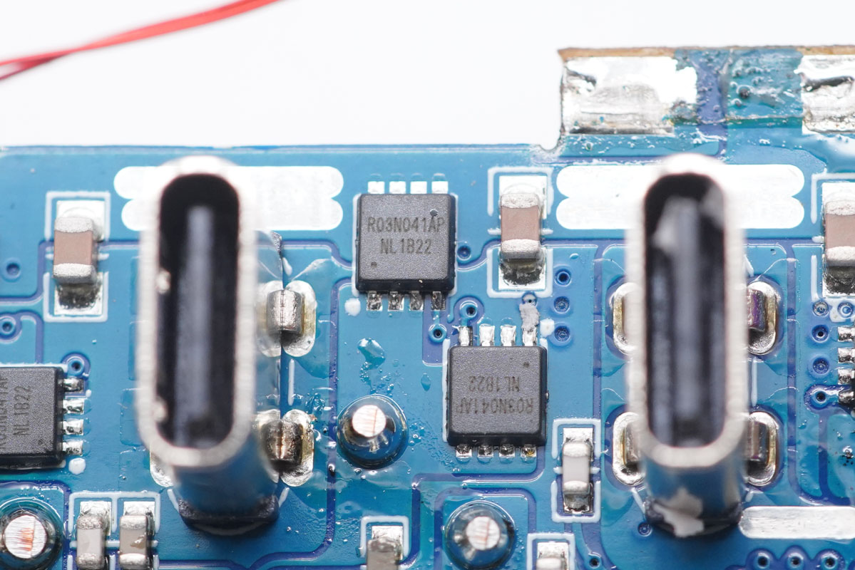 每顆智融SW3516H還各外掛兩顆R03N041AP MOS管輸出同步整流降壓。