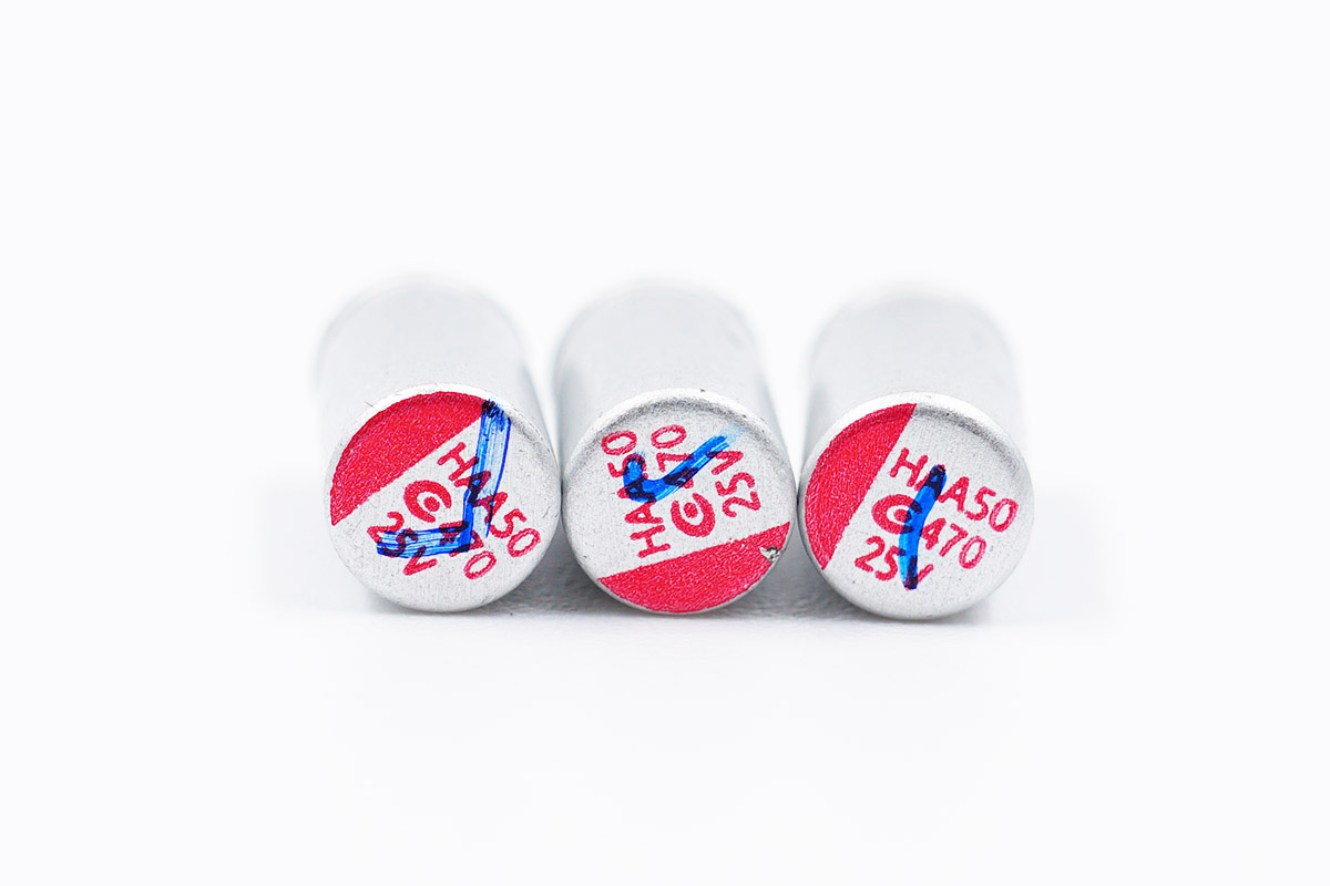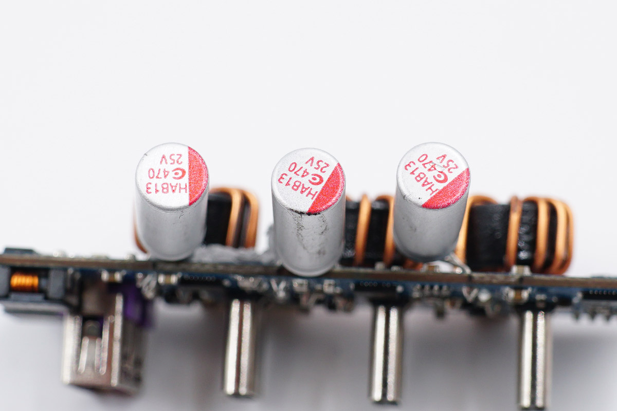固態(tài)電容均來自中國臺灣鈺邦,規(guī)格都是25V 470μF。