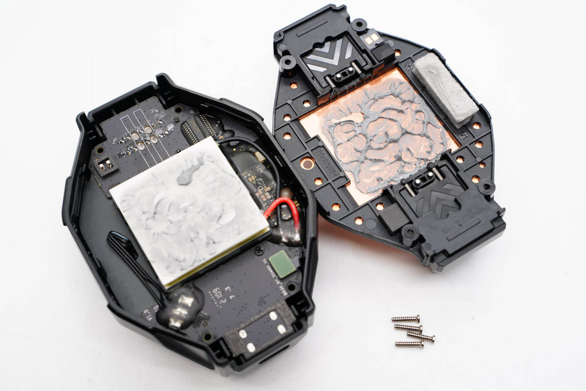 拆掉螺絲將機身殼打開,銅板和制冷晶片間涂有硅脂,加強導冷效果。