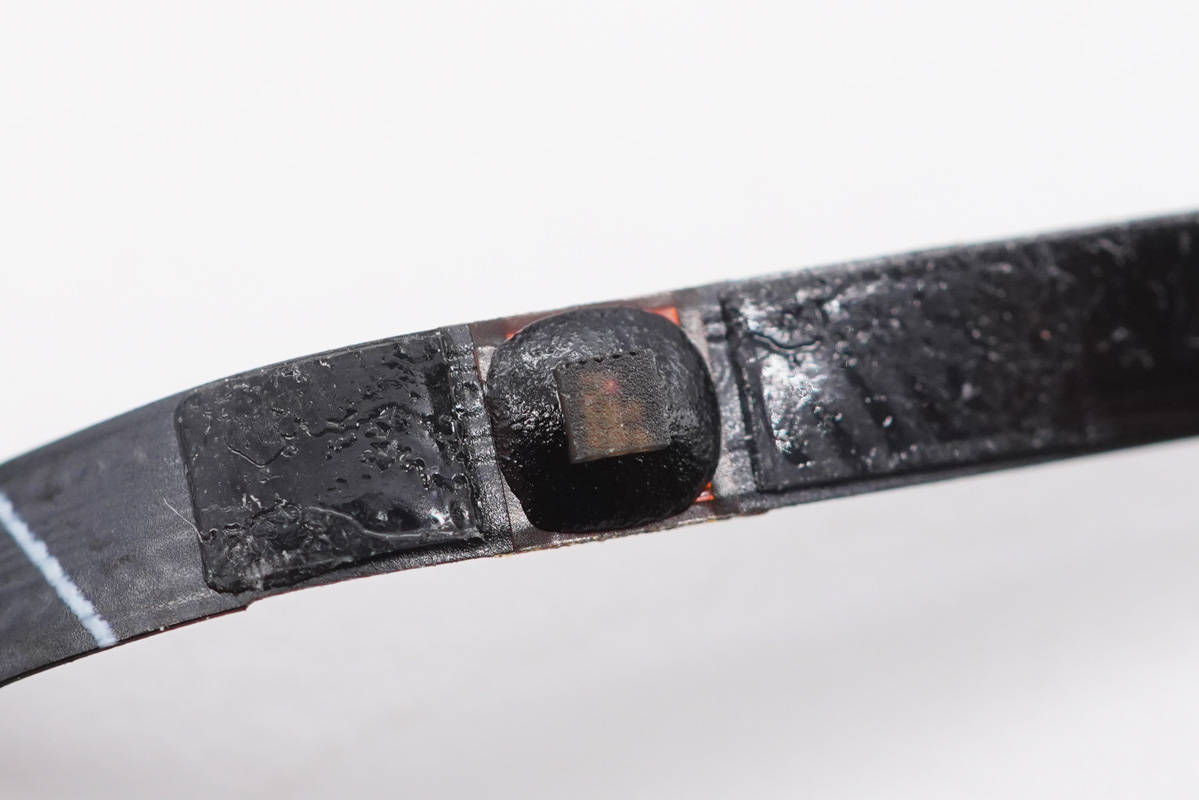 RGB燈帶插槽特寫,貼有泡棉緩沖及密封。