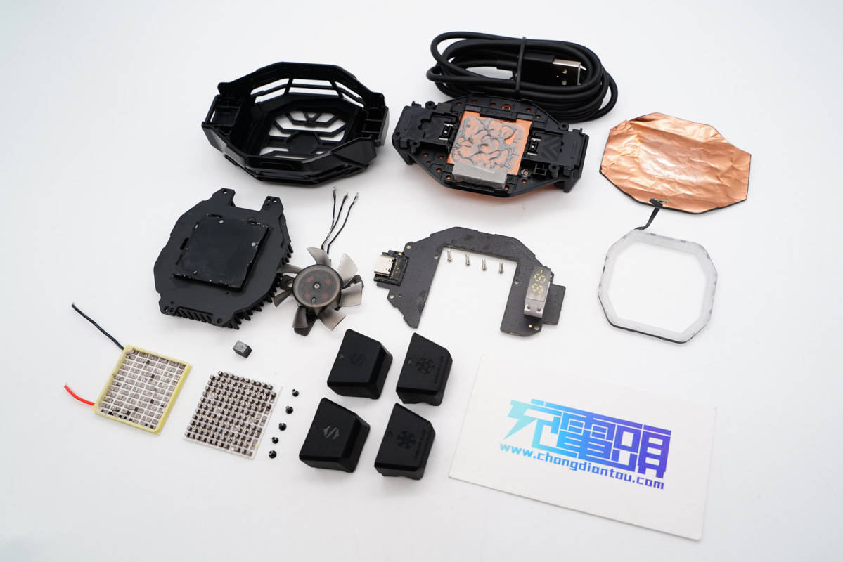 最后是黑色的散熱鋁塊,背面中心凸起,用以支撐固定制冷晶片。