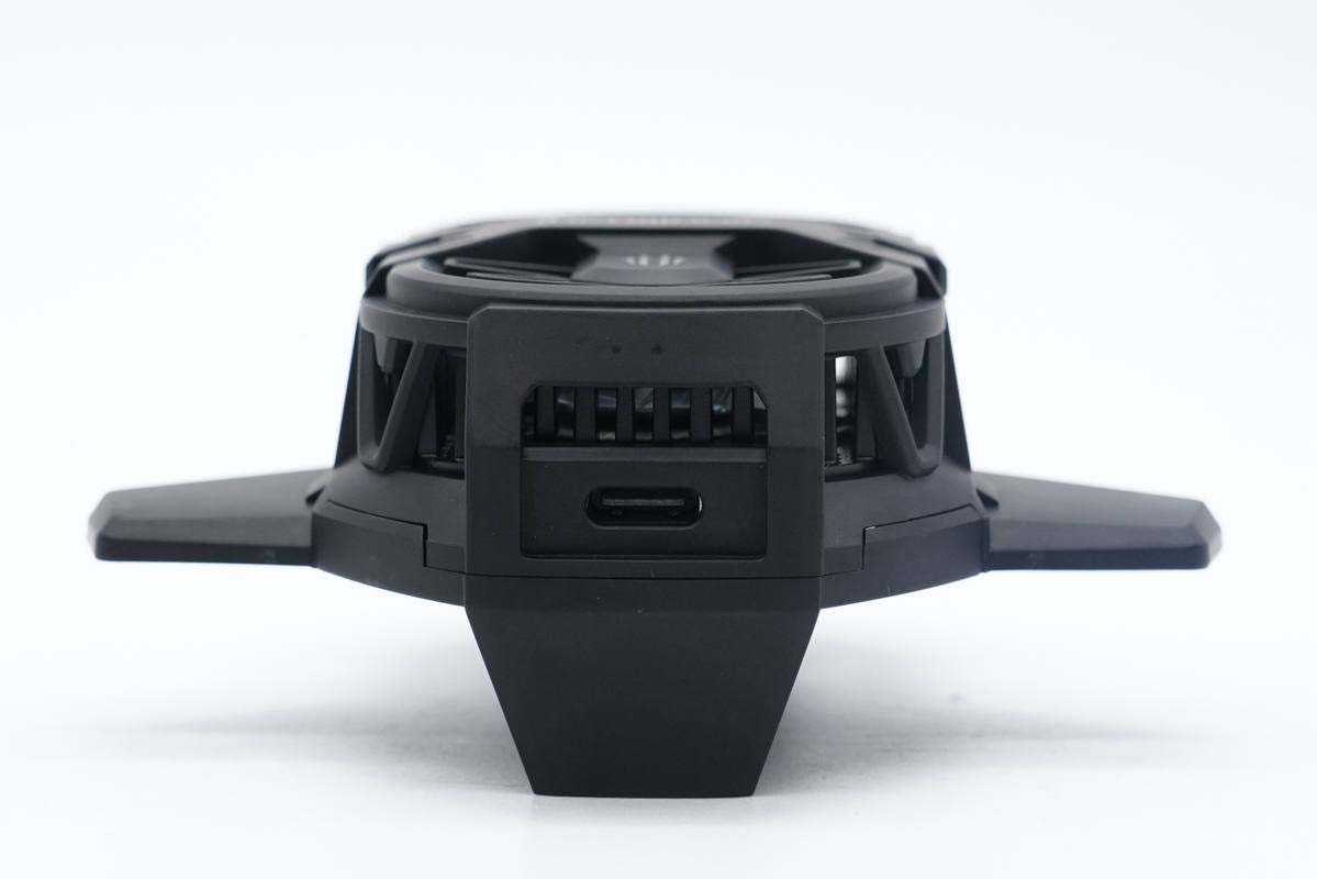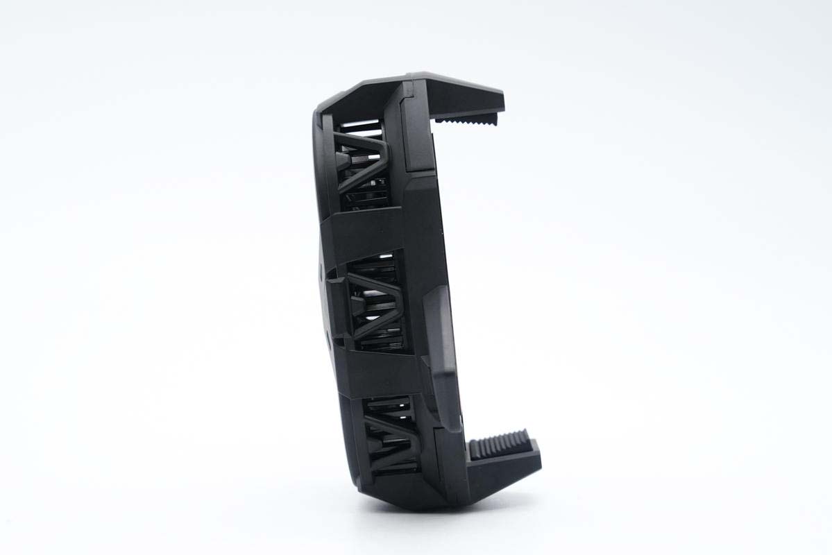 散熱背夾使用PC材質塑料外殼,正面看去造型像太空船,科技風十足。