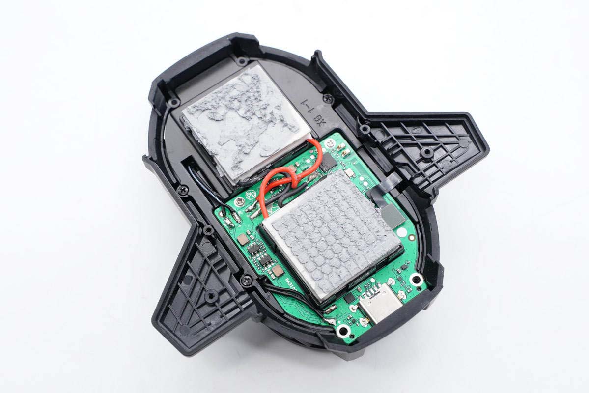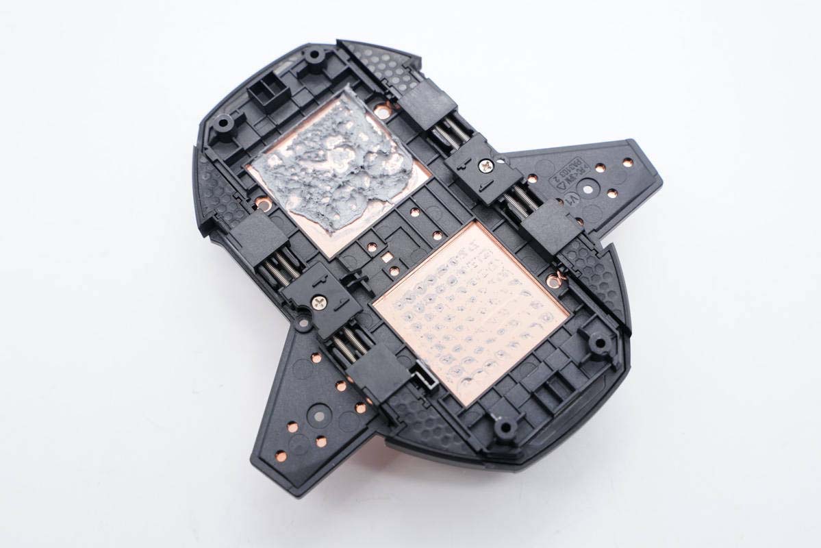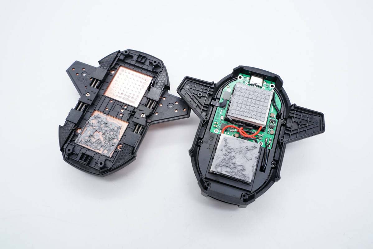 拆掉螺絲打開背夾,內置兩塊制冷晶片,并涂有硅膠幫助導冷。
