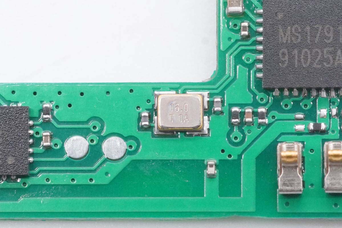 16.0MHz無源晶振,為主控芯片提供時鐘,下方是藍牙天線。