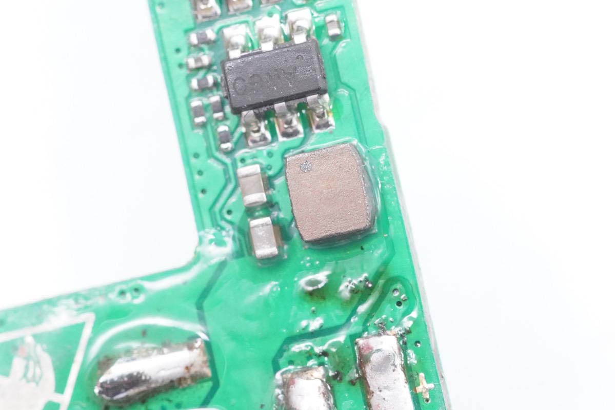 將風扇、制冷晶片等全部拆掉,PCB板正面電路有降壓芯片,單片機和燈控IC。