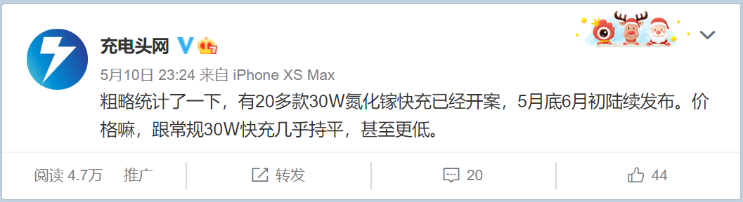 據(jù)充電頭網(wǎng)不完全統(tǒng)計,目前市面上已有數(shù)款30W氮化鎵快充量產(chǎn)上市。與此同時,還有20多款30W氮化鎵快充正在開案,預(yù)計5月底6月初將陸續(xù)發(fā)布。在價格方面,30W氮化鎵快充有望跟傳統(tǒng)30W快充持平,甚至更低,極具市場優(yōu)勢。