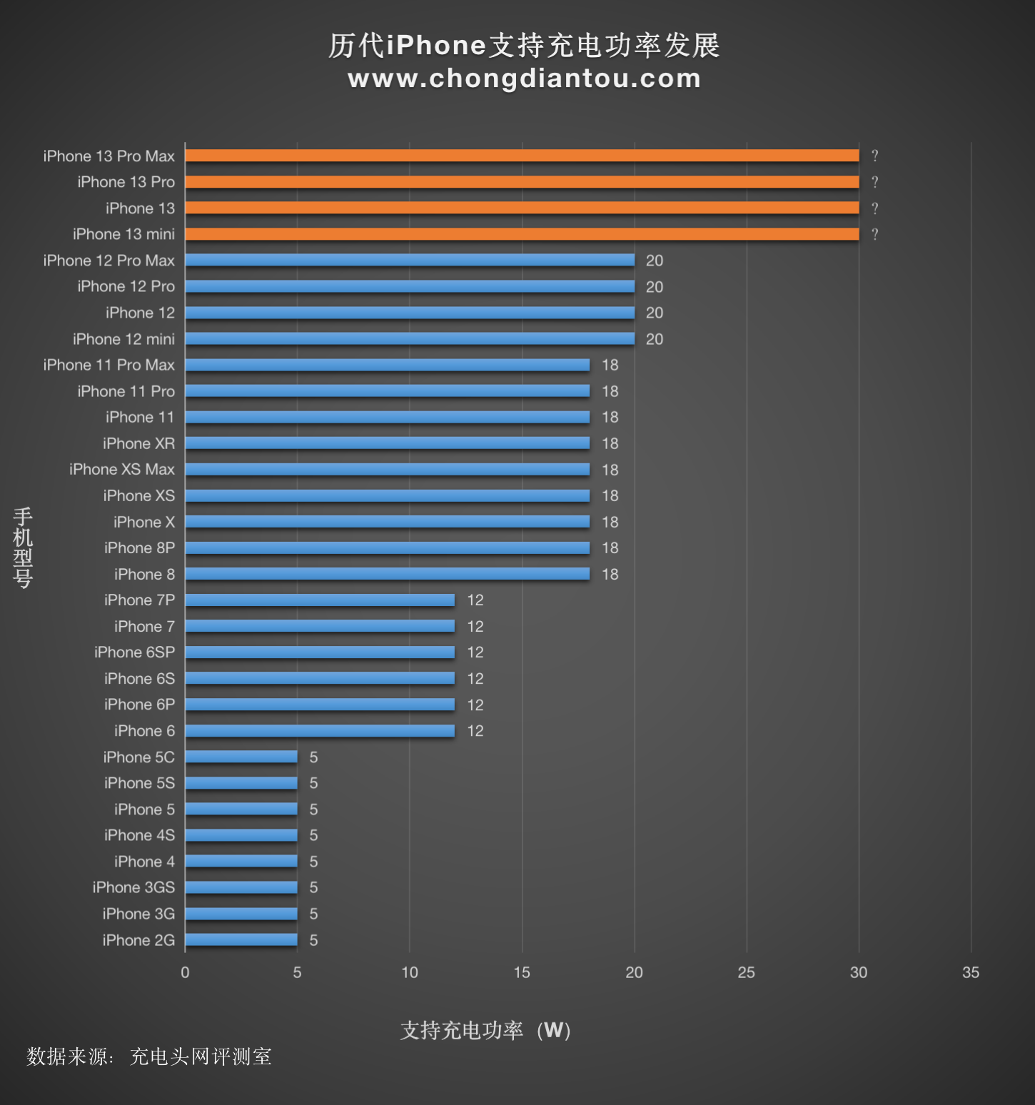 這些品牌都有自己的信息來源,對行業(yè)大勢更是敏感,現(xiàn)在都一窩蜂地朝著30W沖,自然是篤信iPhone 13系列快充必將升級。