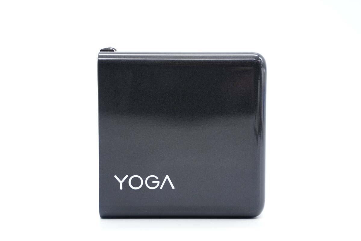 包裝盒延續(xù)YOGA品牌簡約風(fēng)格設(shè)計,對角分別印有Lenovo、YOGA品牌以及產(chǎn)品名稱,中心印有充電器外觀圖。