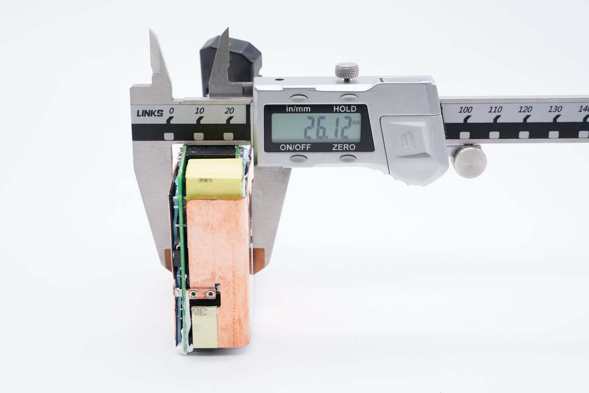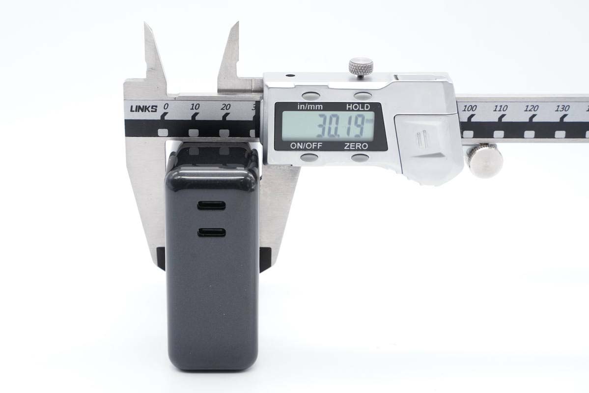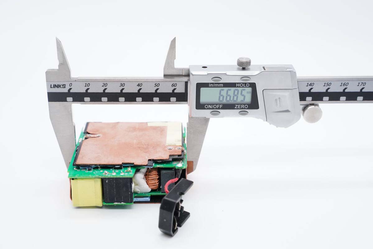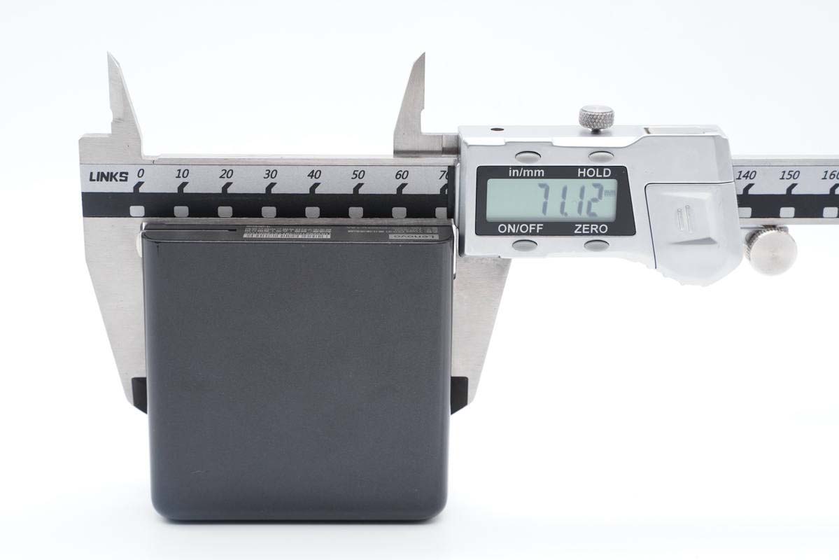 使用游標(biāo)卡尺實(shí)測充電器機(jī)身高度為71.1mm。