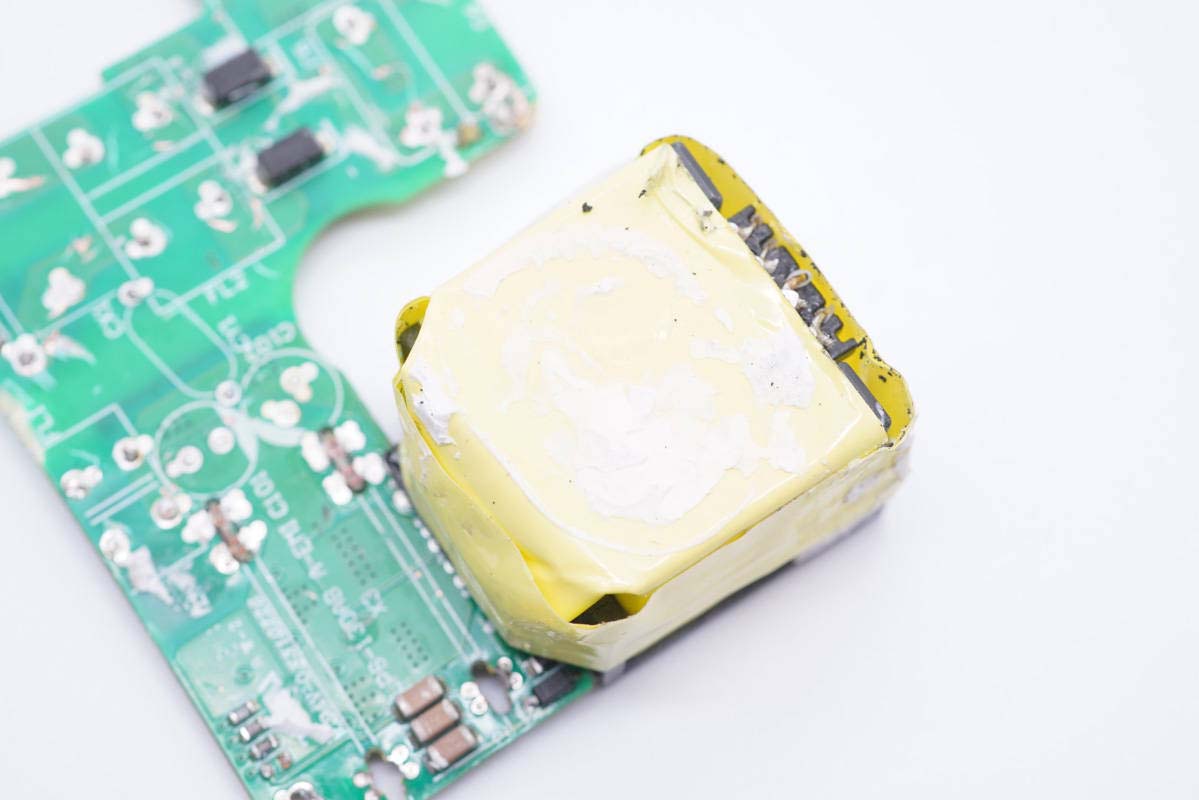 變壓器包裹絕緣膠帶,頂部打膠幫助導(dǎo)熱和固定。