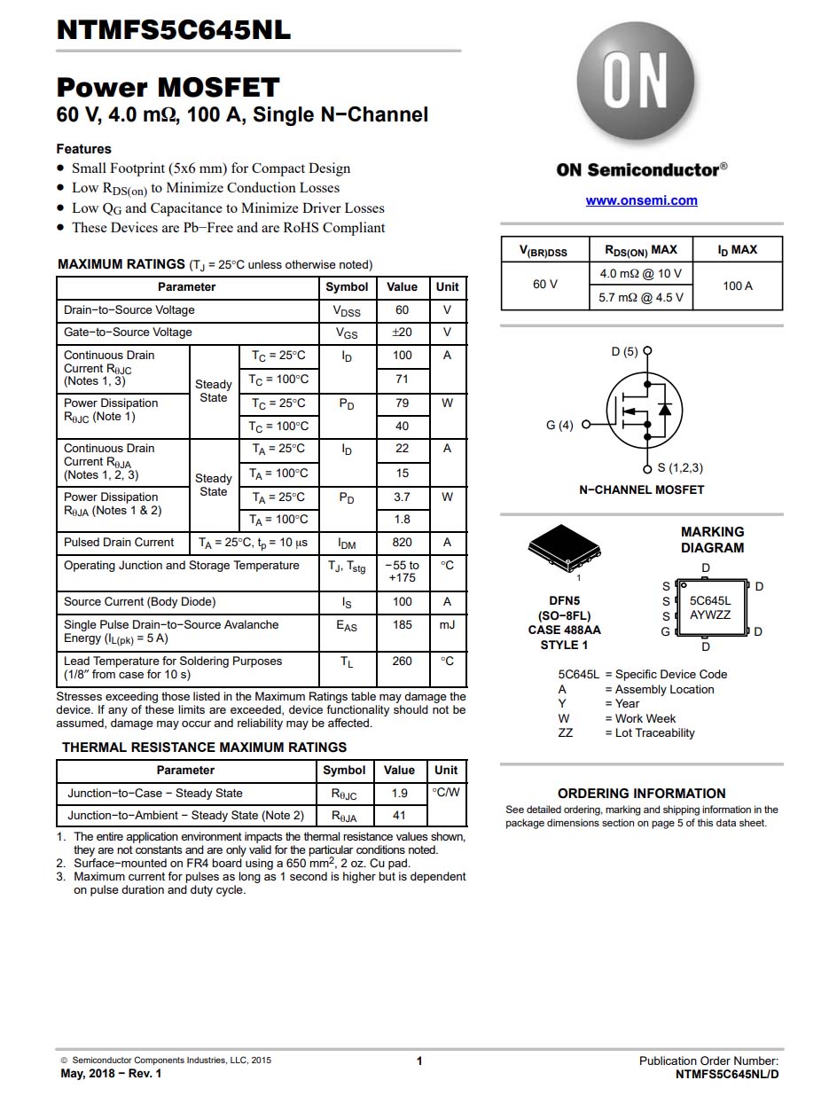 安森美 NTMFS5C645NL 詳細(xì)資料。