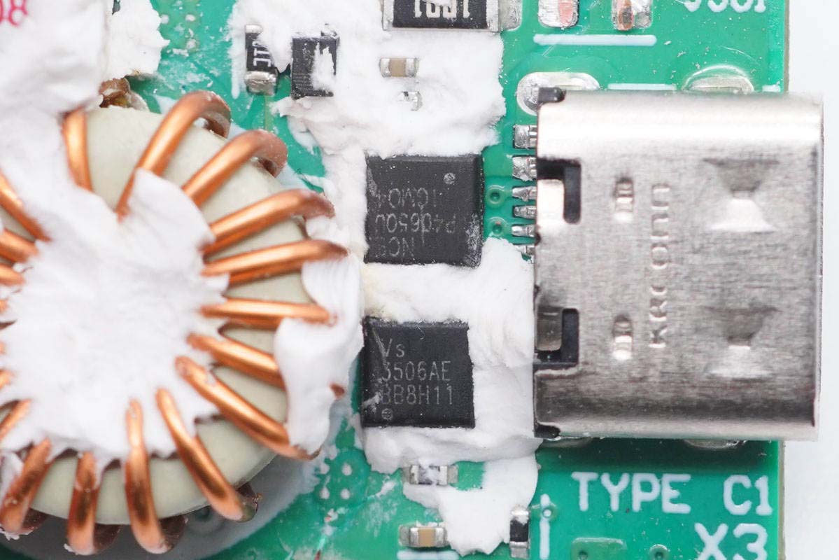 協(xié)議IC采用偉詮WT6633P,支持USB PD3.0,支持高通QC4,QC4+和QC5。通過USB-IF認(rèn)證,TID1070018。同時WT6633P還通過了高通QC5認(rèn)證,認(rèn)證號4789627043-2,高通QC4+認(rèn)證,認(rèn)證號4788566324-2。WT6633P內(nèi)置8051內(nèi)核,內(nèi)置恒壓恒流控制,片內(nèi)集成輸出電流傳感,支持線損補(bǔ)償,內(nèi)置完善的保護(hù)功能。