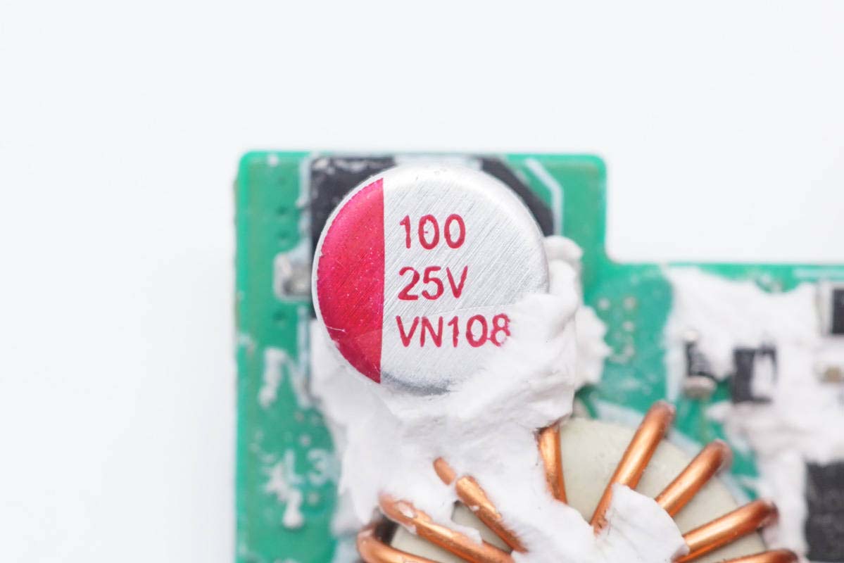 充電器采用兩塊小板設(shè)計,之間有塑料柱支撐固定,初次級間有隔離板,采用艾華電解電容以及柏瑞凱固態(tài)電容進(jìn)行輸入輸出濾波,C口母座來自精睿科技,且都設(shè)有TVS進(jìn)行靜電保護(hù)。作為聯(lián)想旗下首款130W氮化鎵充電器,無論是用戶的使用體驗,還是內(nèi)部做工細(xì)節(jié),都是面面俱到,用料也是相當(dāng)扎實(shí)可靠,誠意滿滿。