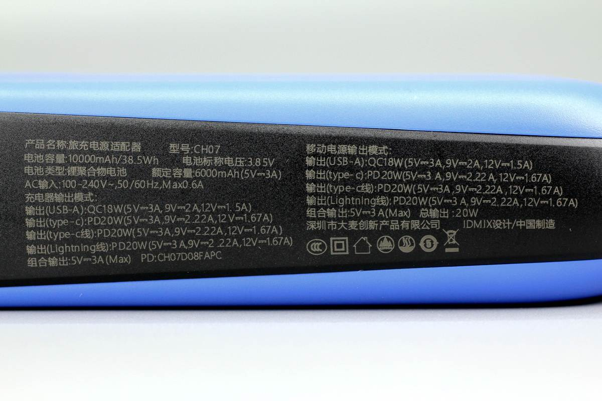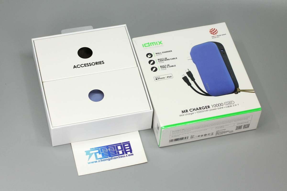 最近充電頭網拿到了IDMIX大麥一款三合一移動電源CH07,該產品集成PD快充充電器和移動電源,并自帶USB-C和Lightning輸出線纜,無論是iPhone還是安卓機,都能使用,最多可同時給四臺設備充電。而且這款產品不僅通過了蘋果MFi認證,還獲得紅點獎,可以說非常的不一般。下面我們就對這款產品進行詳細拆解,看看其具體設計做工。