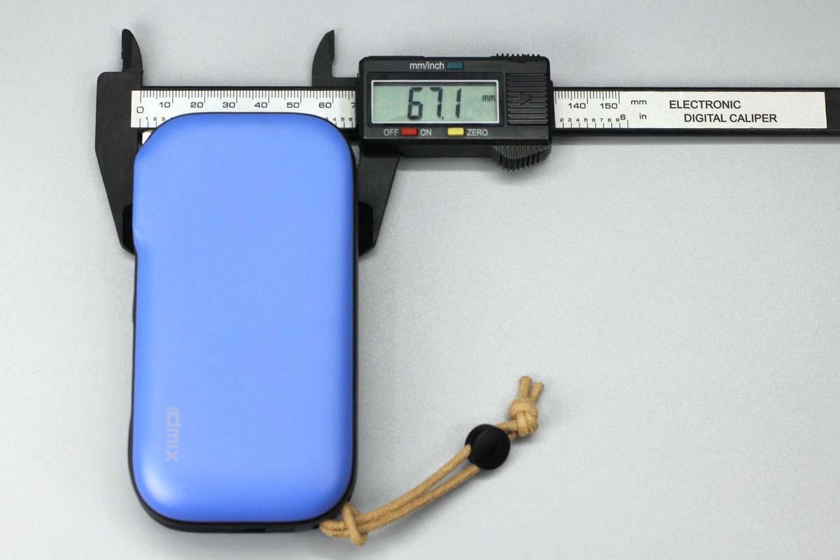 機身厚度比一元硬幣直徑稍大一點,此外側身黑色外殼兩端寬度不一樣,作為獲得紅點獎的產品,設計的確很有特色,加上藍色正背面外殼,個性鮮明。