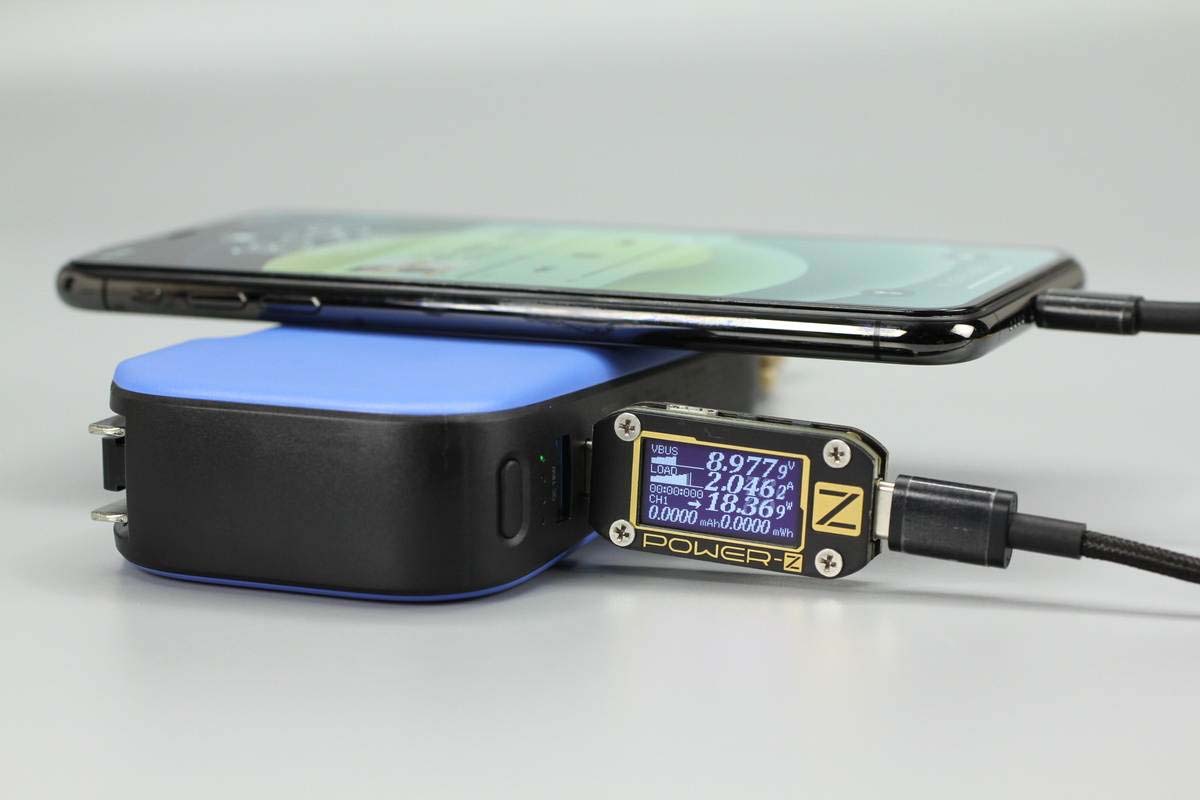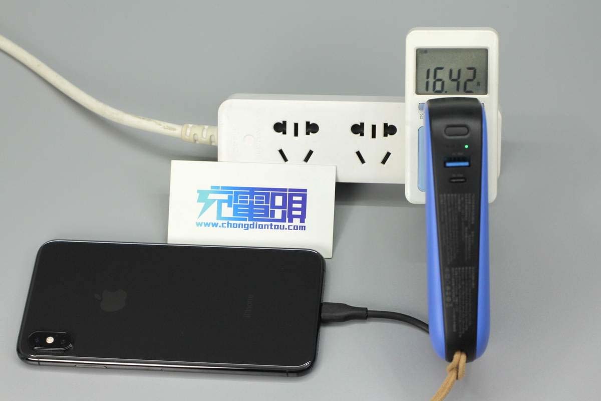 另外測得移動電源模式下,使用USB-C接口給iPhone X充電,輸出功率為8.98V 2.05A 18.36W。