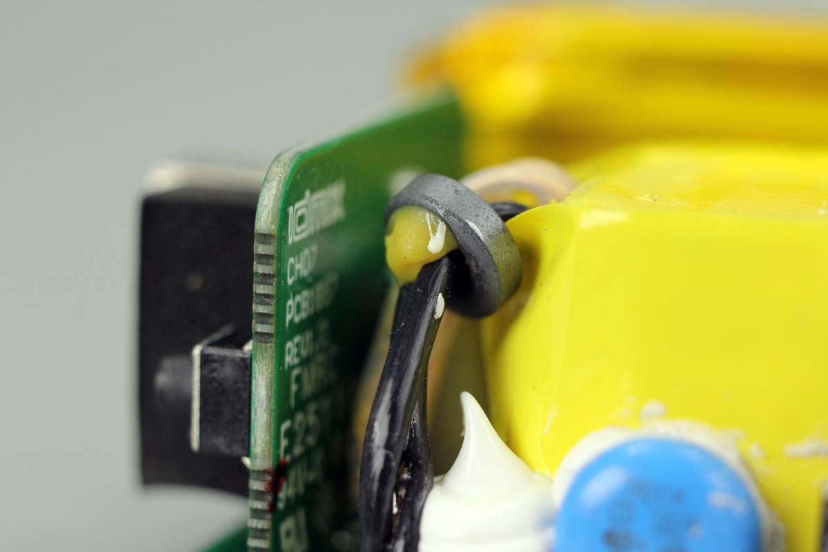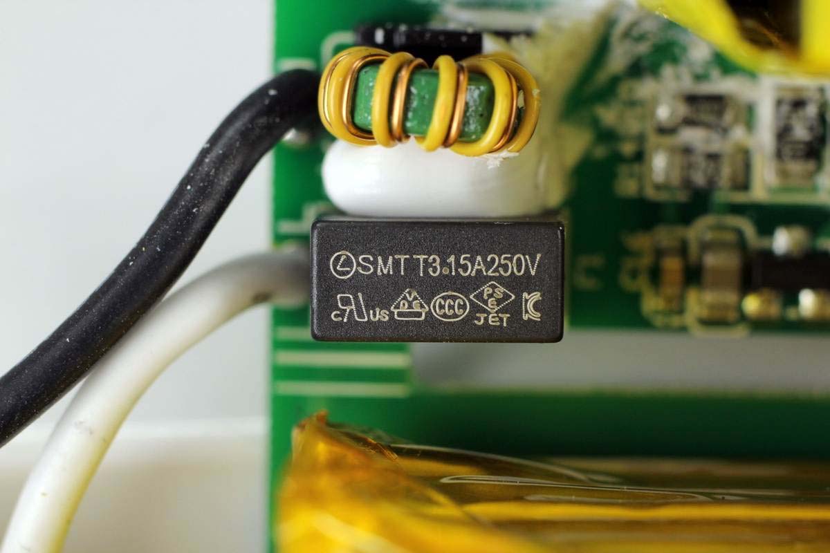 保險絲規格為3.15A 250V,共模電感雙線繞制,兩顆器件打膠加固。
