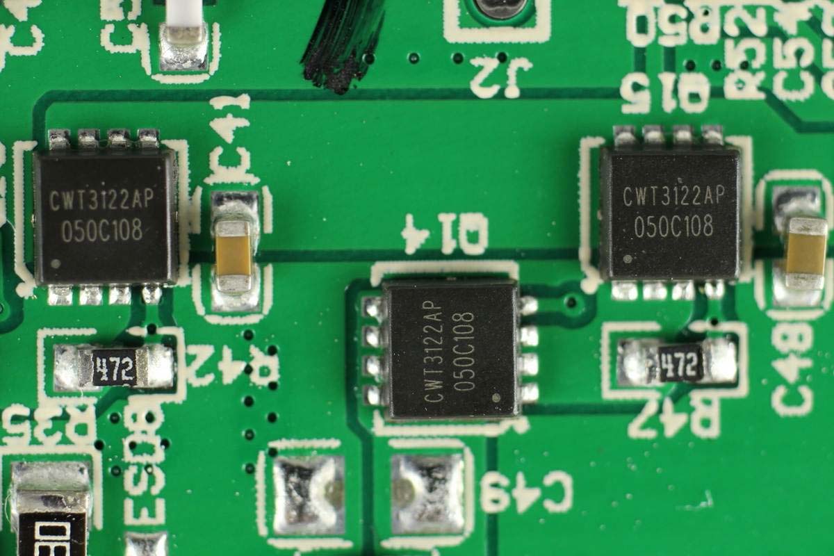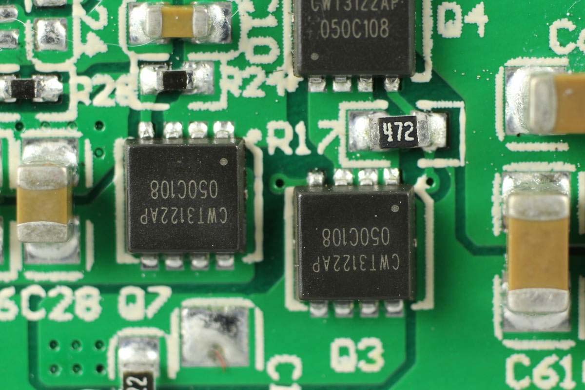 外掛四顆MOS管實現雙向同步升降壓,絲印CWT3122AP。