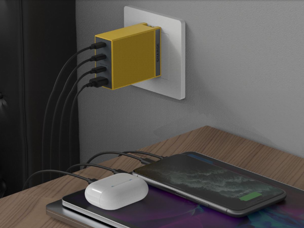 在多設備同時充電時,閃極100W Pro 氮化鎵充電器會根據輸出情況,智能調整各接口輸出功率性能,在100W、60W + 30W、45W + 30W + 20W、45W + 30W +5V4A之間智能調整,最大可為四臺設備同時充電。