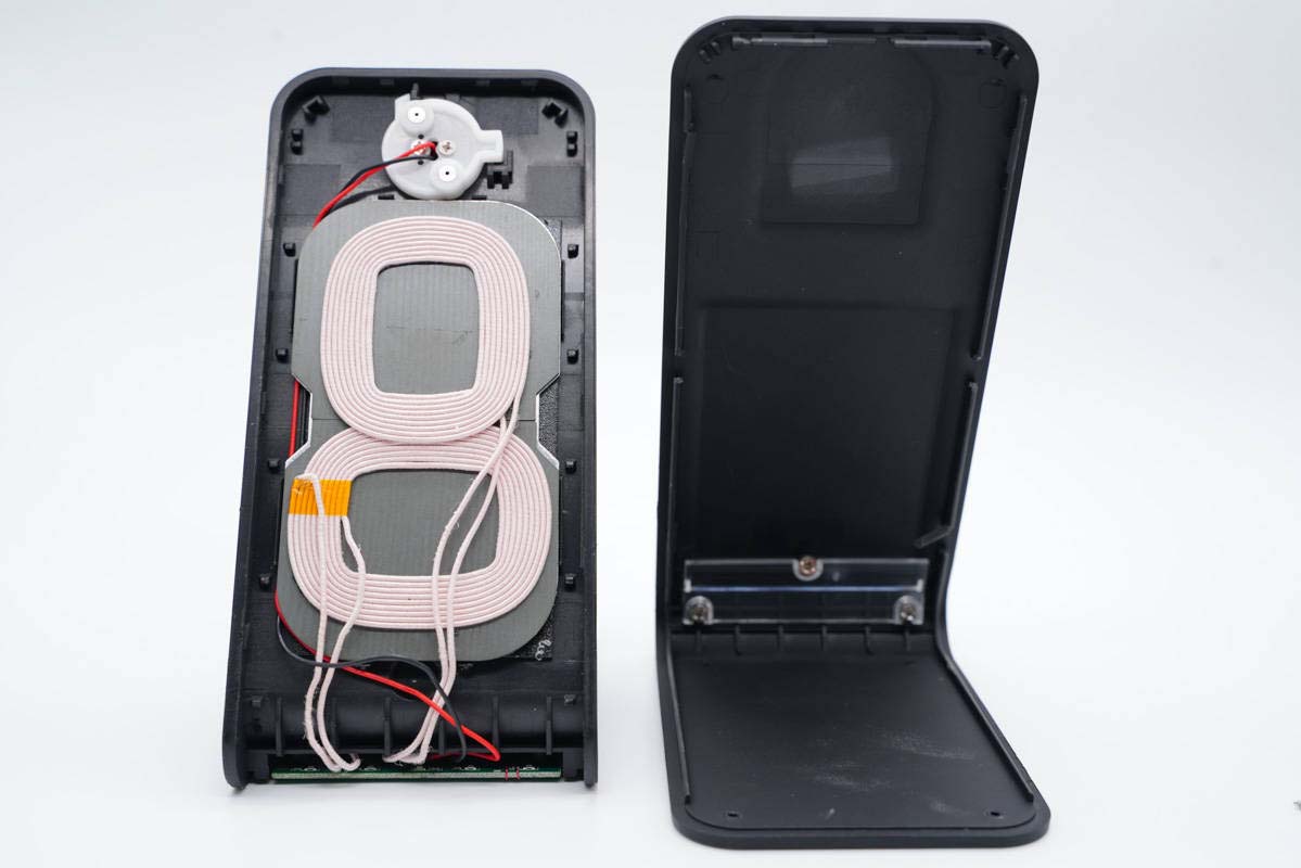 其中手機無線充內置雙線圈,充電時橫豎放置都能進行充電,平時邊充電邊刷劇使用體驗更好。此外PCB板和線圈配有熱敏電阻進行溫度監控,手機無線充電線圈還配有大型散熱片幫助散熱。