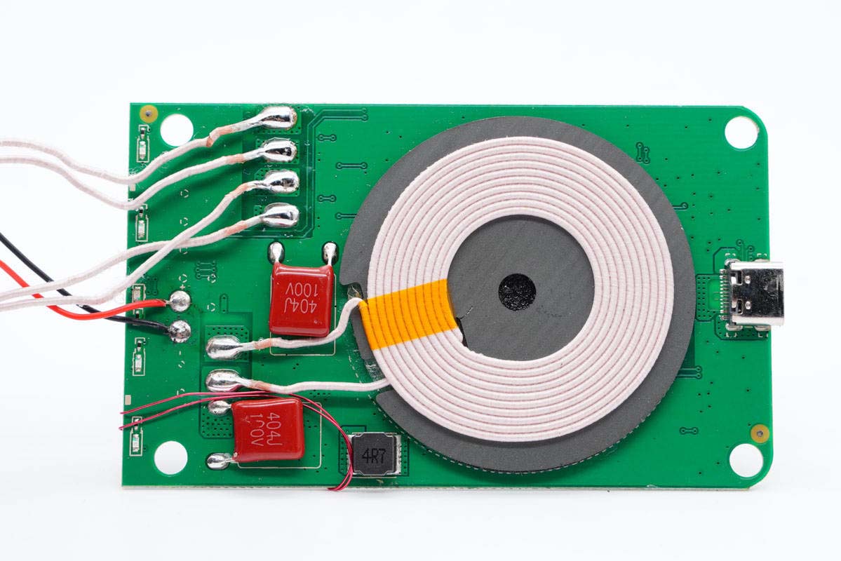 無線充電線圈均連接在背面,此外還有諧振電容和電感。