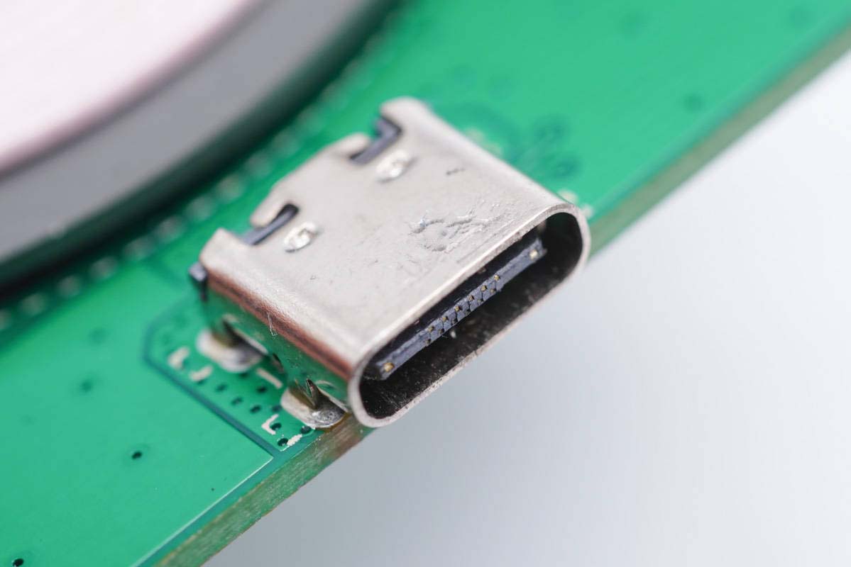 USB-C母座特寫,過孔焊接。