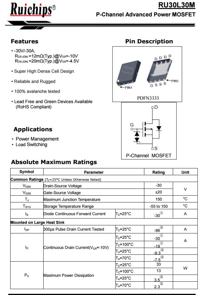 輸入保護管采用銳駿RU30L30M,耐壓30V,PDFN3333封裝。