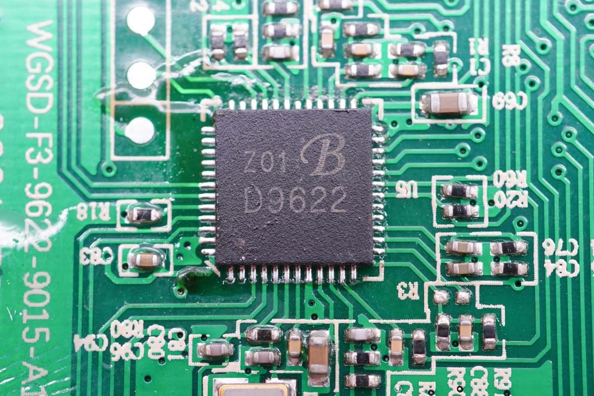 充電頭網通過拆解發現,這款F3無線充底座內置一塊PCB板,集成了手機和耳機無線充電路,采用貝蘭德D9622一芯雙充無線充方案,另外也是采用貝蘭德D9015驅動器驅動兩路無線充電線圈。貝蘭德研發的“一芯雙充”方案,集成度高,電路精簡,很適合小型化無線充電器的設計。