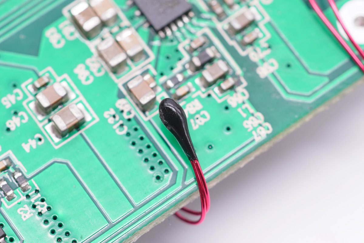 PCB板使用固定柱固定,并配有熱敏電阻進行溫度監控。