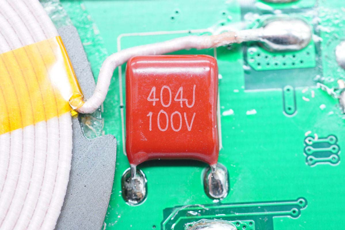 另一顆諧振電容404J 100V,用于手機無線充電路。