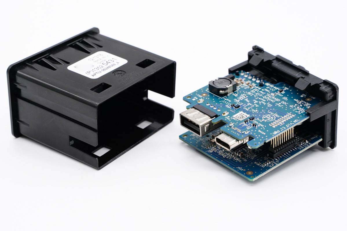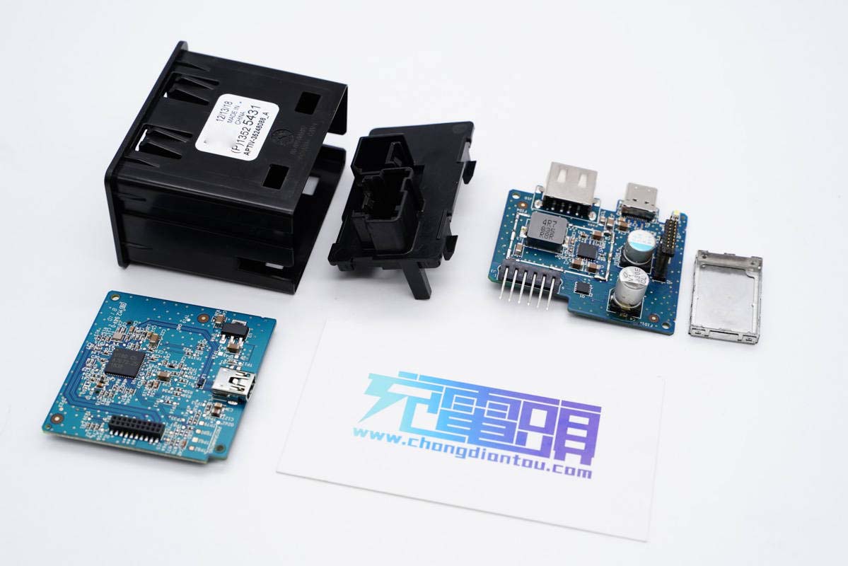 最近充電頭網拿到了Delphi德爾福一個車上充電模塊,不僅配有1A1C雙輸出接口,還有一個SD卡槽,插入SD卡即可給行車記錄儀等設備使用。這個充電模塊采用卡扣組裝設計,安裝以及拆卸都十分方便,由于是車子的一部分,車主無需再額外去購買車充。下面我們就對這個充電模塊進行拆解,看看其是如何設計的。