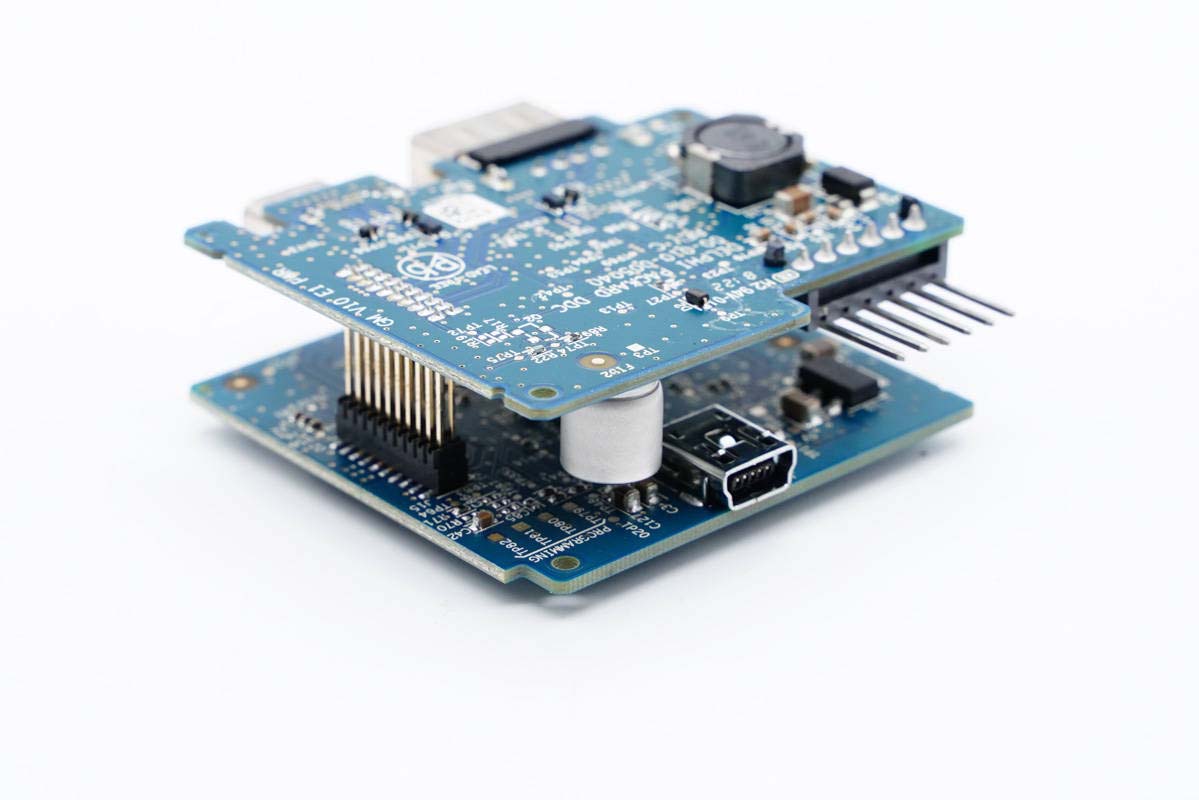 兩塊PCB板通過塑料殼以及連接排針支持固定。