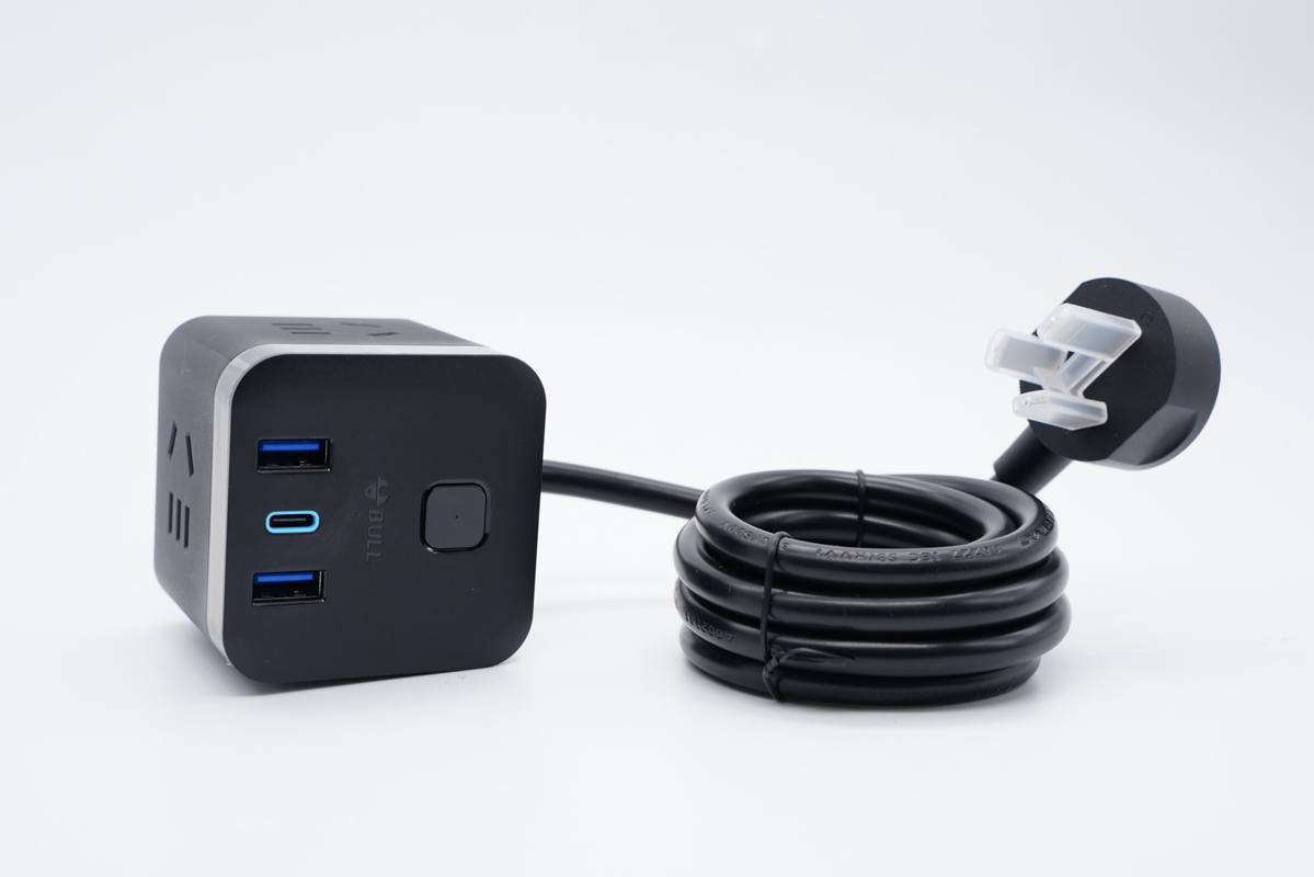 公牛魔方插座整體一覽,電源線捆扎整理。