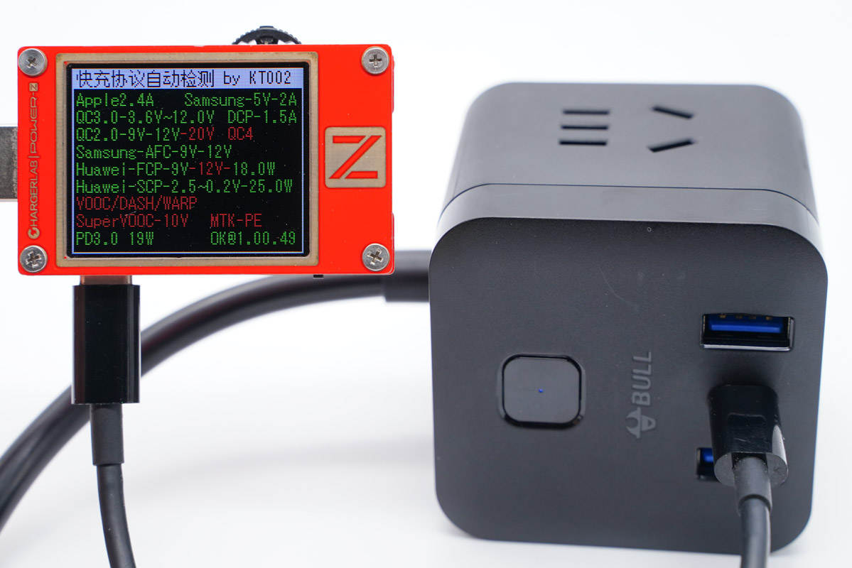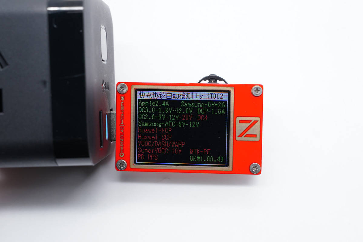 使用ChargerLAB POWER-Z KT002測得USB-A口支持Apple 2.4A、Samsung 5V2A、DCP協議,以及QC2.0/3.0、AFC快充協議。