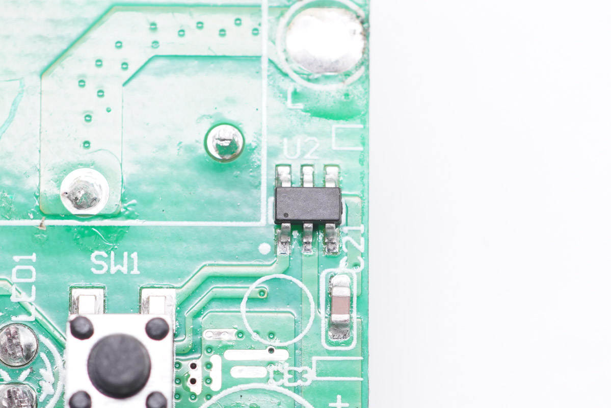 一顆無絲印六腳芯片,信息不詳,用于控制插座開關。