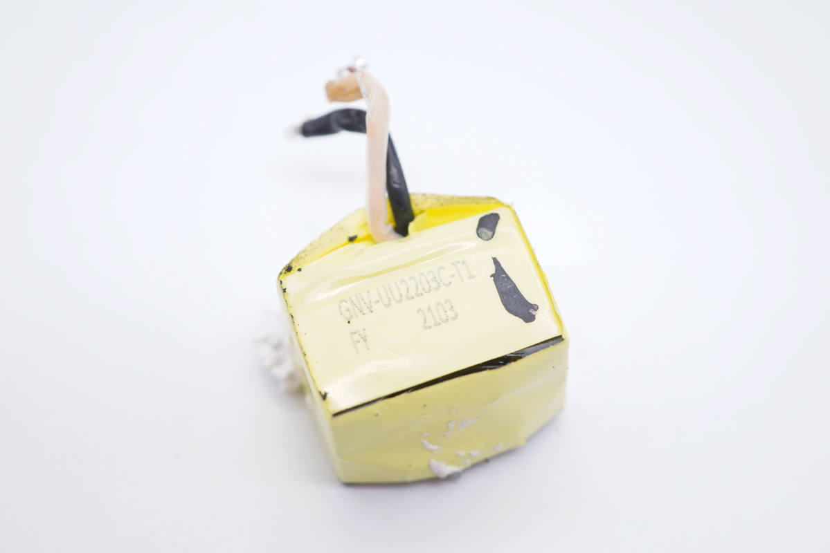 主板另一側,設有主控芯片供電電容、變壓器以及輸出濾波固態電容。