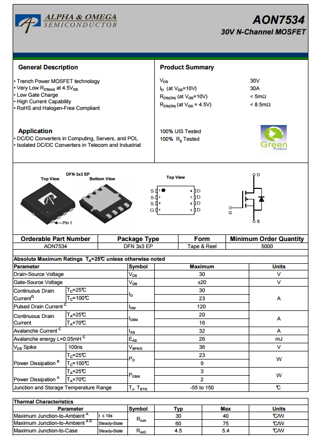 A口輸出VBUS開關管采用AOS萬代AON7534,NMOS,耐壓30V。