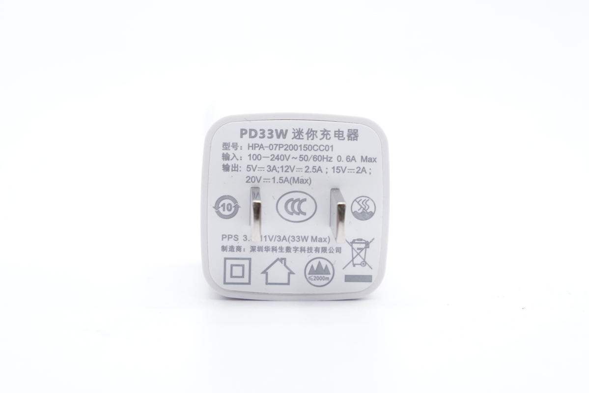 面對正在快速興起的33W迷你快充市場,深圳華科生數(shù)字科技有限公司近期推出了一款迷你33W快充供客戶選擇。這款產(chǎn)品沒有氮化鎵加持,卻能將功率密度做到1.05W/cm3,可以說相當(dāng)厲害了。另外充電器兼容快充協(xié)議豐富,電壓檔位齊全,還支持PPS快充,可以滿足市面上大多數(shù)手機、平板快充需求。下面充電頭網(wǎng)就對其進(jìn)行詳細(xì)拆解,看看充電器是怎么做得如此小巧的。