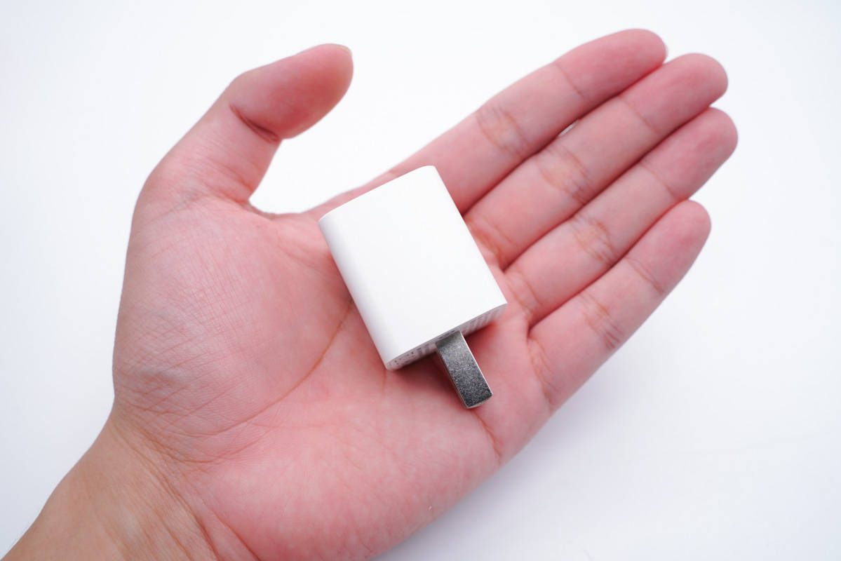 和蘋果30W快充相比,體積要小得多。